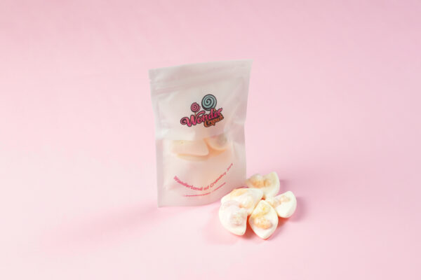 المكونات: شراب الجلوكوز، سكر، ماء، جيلاتين لحم بقري، عصير تفاح، مرطب: سوربيتول المواد الحمضية: حمض الستريك حمض اللاكتيك ؛ بروتين البازلاء المتحلل، عامل التزجيج: شمع العسل / شمع الكرنوبا ؛ النكهات المطابقة للطبيعة (الفراولة، الكريمة، الأناناس التوت الأسود، الفانيليا)؛ الألوان: تارترازين أصفر غروب الشمس كارمين ألورا ريد، كراميل ثاني أكسيد التيتانيوم ؛ تلوين طبيعي للأغذية (مركز السبيرولينا والعصفر