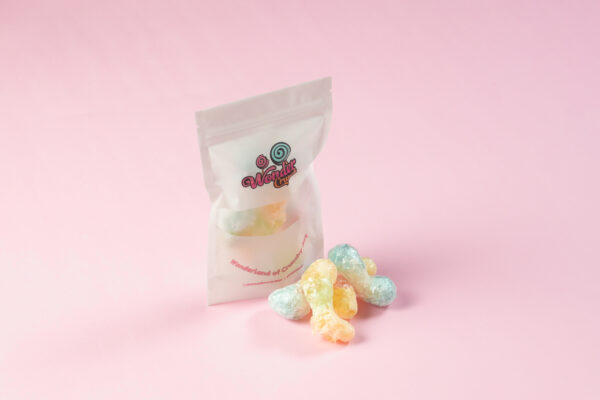 Ingredients: Corn Syrup, Sugar, Gelatin, Modified Food Starch (Corn), Fumaric Acid, Lactic Acid, Citric Acid, Sodium Citrate, Calcium Lactate, Sodium Lactate, Natural and Artificial Flavors, Titanium Dioxide [Color], Yellow, Red, Yellow, Blue.