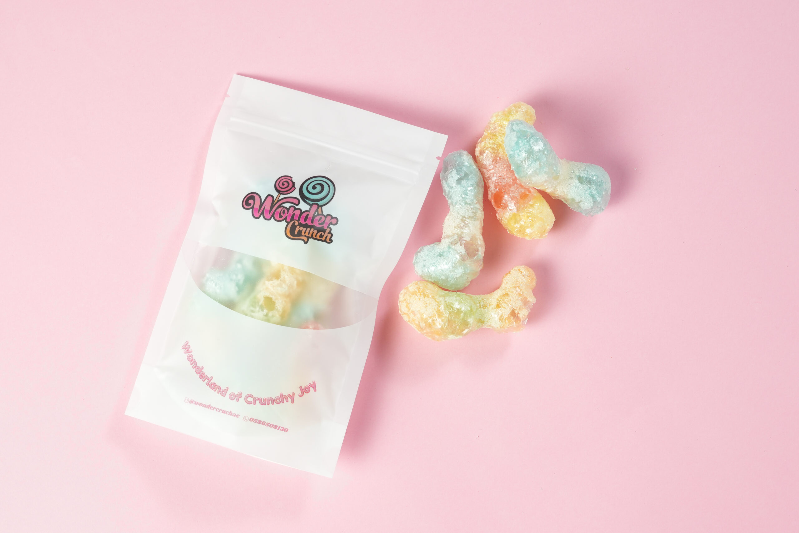 المكونات:شراب الذرة، السكر، الجيلاتين، نشا الطعام المعدل (الذرة)، حمض الفوماريك، حمض اللاكتيك، حمض الستريك، سترات الصوديوم، لاكتات الكالسيوم، لاكتات الصوديوم، نكهات طبيعية وصناعية، ثاني أكسيد التيتانيوم [اللون]، أصفر، أحمر، أصفر، الأزرق